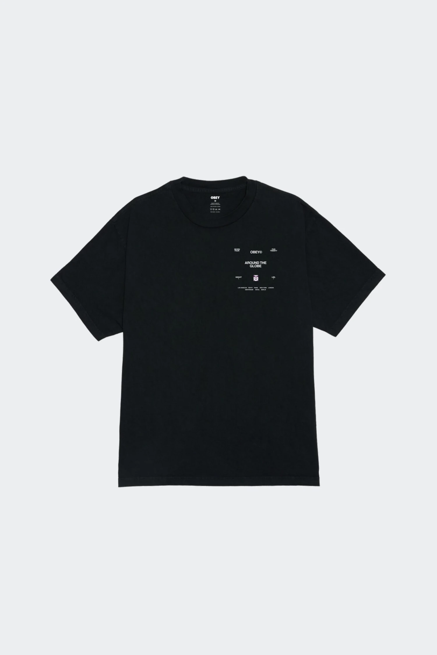AROUND THE GLOBE TEE(Obey Mens Around The Globe Tee_pigment True Vintage Black)